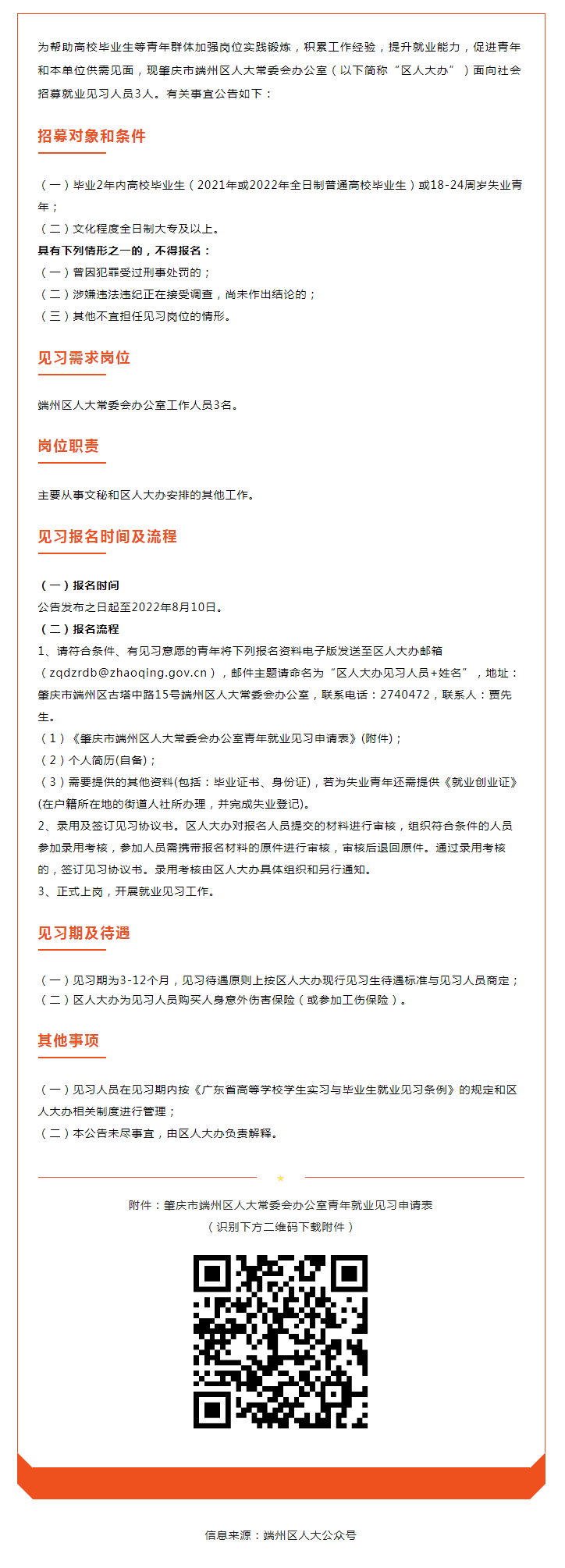 肇慶市端州區(qū)人大常委會(huì)辦公室2022年公開(kāi)招募就業(yè)見(jiàn)習(xí)人員公告